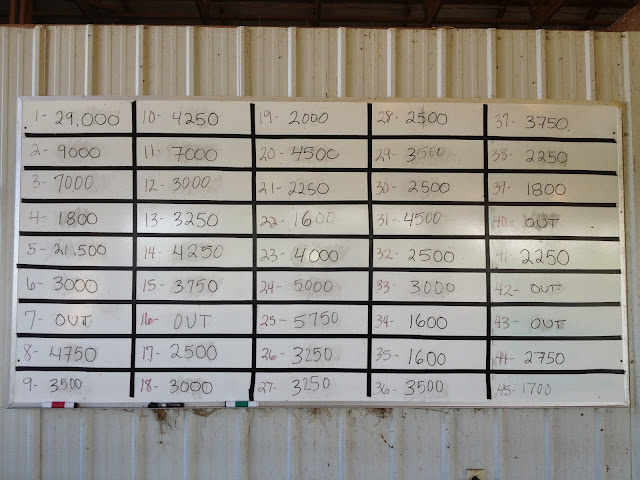 A check of the bid board as of 9:45 am Sunday, September 9th. Don't forget bids have to be in this evening by 6:00 pm. Call Tim at 765.541.0738 or Nate at 717.926.0874. For bid checks only call Emily at 765.546.0207.